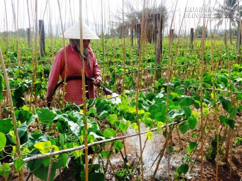 Má của tôi quanh năm đầu tắt mặt tối quanh những giàn bầu, giàn bí, khóm rau...để có cái mà bán vào những bữa chợ sáng.