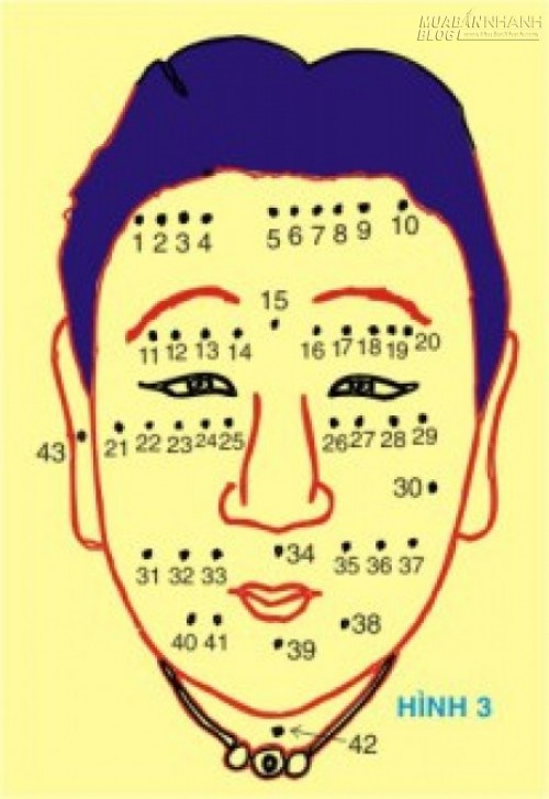 C Not ruoi 2 ongHình 2 cho thấy trên khuôn mặt một người đàn ông thường hiện ra khoảng 41 nốt ruồi tại những nơi sau :