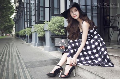 Ngọc Trinh thực hiện bộ ảnh thời trang dạo phố. Cô diện nhiều kiểu trang phục trong đó có mốt đầm ngủ đang được ưa chuộng. Với bộ đầm màu pastel, người đẹp kết hợp với túi xách họa tiết làm điểm nhấn.
