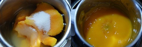 Sau đó, thêm đường, muối, nước chanh vào máy xay, xay nhuyễn.