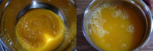 Bước 2: Cho hỗn hợp xoài ra bát lớn, thêm nước lạnh vào. Khuấy đều.