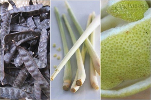 Bồ kết mua về bạn rửa qua cho sạch bụi bẩn, sau đó để khô và nướng lên cho bồ kết bốc mùi thơm, chú ý không nướng khét. Sau khi nướng, bạn bẻ nát hoặc giã hơi dập bồ kết, bỏ vào nồi đun. Sả cây cắt thành nhiều khúc, đặp dập. Vỏ bưởi cam chanh cắt khúc tùy thích. Cho tất cả nguyên liệu vào nồi, đổ vừa ngập quá mặt nguyên liệu một chút, đun cho đến khi các chất trong nguyên liệu thôi ra nước hết và phần nước sắc lại đặc hơn.