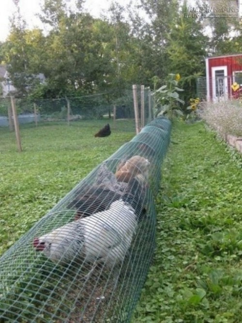Dưới đây là một ý tưởng làm vườn sáng tạo về mô hình nuôi gà rất độc đáo: tạo một không gian riêng biệt cho gà di chuyển khắp khu vườn mà lại không ảnh hưởng đến vườn rau cũng như các khóm hoa xinh đẹp trong vườn của bạn.
