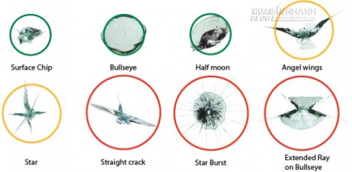 Có rất nhiều dạng vết nứt khác nhau trên kính lái như vết nứt dài, vết nứt hình mắt trâu, hình sao...Tùy từng loại mà có cách xử lý phù hợp và quy trình xử lý khác nhau. Cần thiết nhất là đem kính đi sửa sớm nhất có thể, tránh tạp chất bụi bẩn lọt vào vết nứt, hoặc vết nứt lan rộng đến mức không cứu vãn được.
