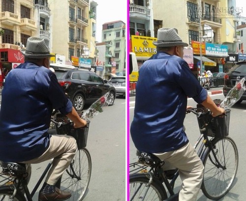 Hình ảnh ông cụ đạp xe, trên giỏ xe có cài hoa hồng khiến dân mạng phát cuồng.