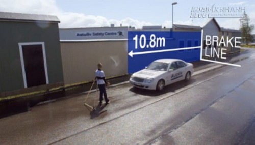 Khoảng cách dừng lúc đầu là 15,3 m giảm xuống còn 10,8 m khi sử dụng phanh hút chân không Torricelli. Ảnh từ video. |