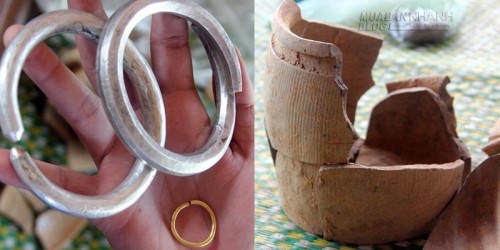 Theo đó, ngày 5/1, anh Vi Văn Phúc (SN 1978, ngụ tại bản Khe Thơi) thuê thợ về đào móng xây nhà. Trong lúc đào móng, những người thợ này bất ngờ phát hiện một hũ sành bị vỡ, bên trong có nhiều vòng bằng vàng, bạc, đồng, cụ thể là 2 vòng vàng, 6 vòng bạc và 1 lượng vàng vụn.