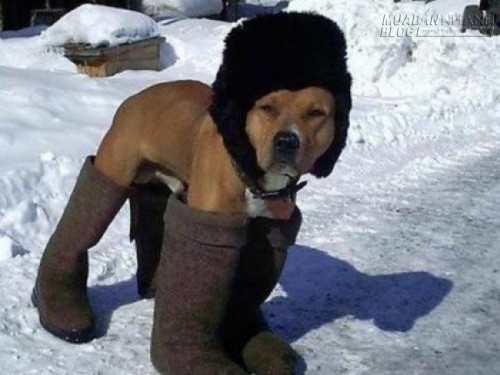 Ra đường thì phải đội mũ và đi giày cẩn thận không cảm lạnh thì toi!