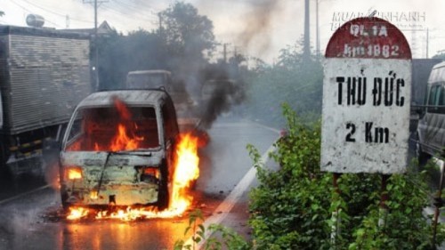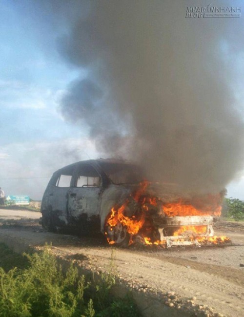 Kia Morning bị cháy trơ khung vào chiều 16/6/2014 trên đường đê thuộc xã Cao Đại (Vĩnh Tường, Vĩnh Phúc).