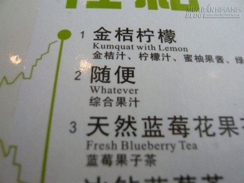 “Nước hoa quả tổng hợp” thì thành “Whatever” (Cái gì cũng được).