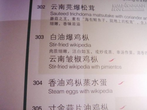 “Trứng hấp với nấm đùi gà” biến thành “Steam eggs with wikipedia” (Trứng hấp với… wikipedia?).