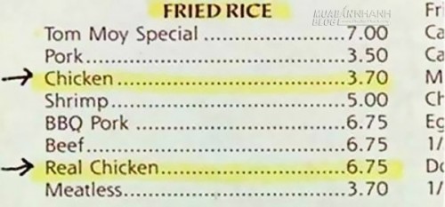 Bạn muốn ăn “Chicken” (Thịt gà) hay “Real Chicken” (Thịt gà thật)?