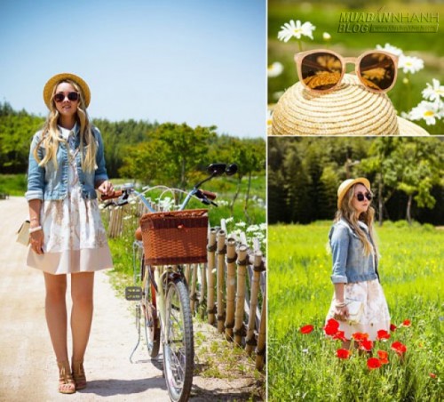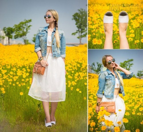 Kết hợp áo khoác chất liệu denim, bạn sẽ có ngay 1 kiểu đồ hè thật năng động, cá tính mà vẫn mềm mại, ngọt ngào.