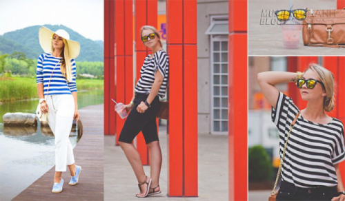 Có nhiều cách kết hợp áo thun sọc ngang, với quần jeans rách, shorts lửng, váy đuôi cá, áo khoác dáng dài, quần baggy... Hầu như kiểu nào cũng rất hợp mốt và dễ chịu trong ngày nóng.