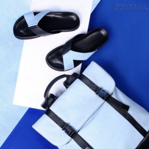 Túi xách và dép ton sur ton trong chất liệu denim thanh lịch, phù hợp cho một ngày cuối tuần thư thái.