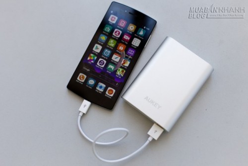 Dung lượng thực ở mẫu pin 10.000 mAh đạt xấp xỉ 90% và nó có thể sạc được gần 3 lần các mẫu smartphone cao cấp hiện nay như Galaxy S6, One M9 hay Bphone... sau mỗi lần nạp đủ dung lượng. Dung lượng lớn và hỗ trợ sạc nhanh, nhưng pin của Aukey chỉ có một cổng USB để sạc điện. Trên cạnh có nút nguồn và đèn LED thông báo dung lượng.