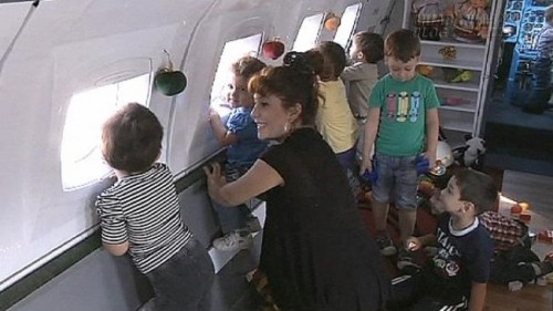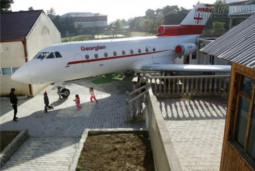 Trường mẫu giáo trong máy bay là ý tưởng của thầy Gari Chapidze – hiệu trưởng của ngôi trường này tại thành phố Rustavi, Đông Nam Gruzia. Thầy đã biến một chiếc máy bay Yakovlev 42 cũ ở Georgia thành phòng học kích thích giác quan của trẻ em với cách bố trí và các chi tiết, máy móc ban đầu của máy bay được giữ nguyên, từ đó tạo thành một sân chơi độc đáo.