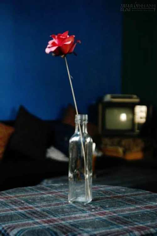 Điểm nhấn nhẹ nhàng ở quán là những bông hoa làm bằng giấy được bài trí ngẫu hứng trên bàn. Ngắm hoa và lắng nghe giai điệu của những bài hát thập niên trước sẽ làm bạn quên đi bộn bề trong cuộc sống hằng ngày. |