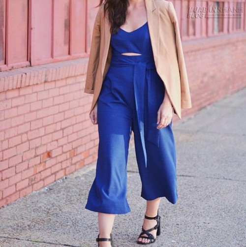 Jumpsuit dáng culottes cùng là gợi ý cho bạn trong mùa thu này. Thêm chiếc áo khoác sành điệu nếu trời se lạnh.