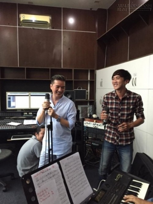 Hình ảnh Nghĩa tập luyện cùng "ông hoàng nhạc Việt" vô cùng vui vẻ.