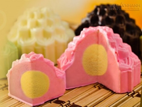 Một phiên bản cực lạ và hợp thời của bánh trung thu. Bánh trung thu kem lạnh cũng có hình dạng như bánh trung thu truyền thống nhưng lại có màu sắc bắt mắt hơn. Cắt nửa ra, bạn sẽ thấy phần kem lạnh còn bốc ra làn khói nhè nhẹ, nếm một miếng thì vừa mát lạnh, vừa ngọt dịu rất thích. Bánh trung thu kem lạnh có hương vị đa dạng, bạn có thể tha hồ lựa chọn tùy theo sở thích nhé.