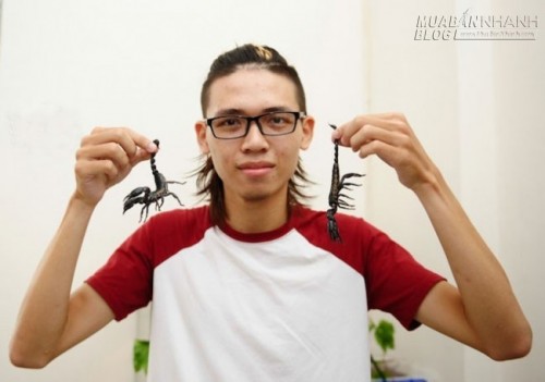 Chàng trai có tên B.Minh, (Q1.TP HCM), sở hữu 3 con bọ cạp trong nhà với lý do nuôi theo mốt và tìm cảm giác mạnh. Nọc những loại bọ cạp sống được ở Việt Nam không có khả năng gây chết một người trưởng thành khỏe mạnh, nhưng lại vô cùng nguy hiểm với những gia đình có trẻ em và những người bị dị ứng với loài vật này. (Ảnh: Zing).