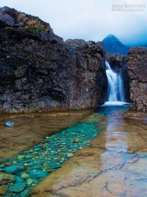 Tuy nhiên, thu hút nhiều ống kính nhiếp ảnh nghiệp dư nhất là Fairy Pools – quần thể hồ xanh được tạo ra bởi rất nhiều thác nước đẹp như tranh vẽ. Nước ở đây trong veo nhìn rõ mồn một từng viên sỏi dưới đáy. Thêm một lần nữa chúng tôi cảm thấy miền Bắc Scotland như một vùng đất bị phù phép.