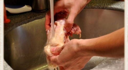 - Tuyệt đối không rửa thịt gà bằng nước.