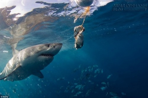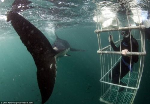 Những kẻ liều lĩnh có thể trải nghiệm những con cá mập sống động ở Cape Town trong những chiếc lồng lặn ở đảo Seal, thuộc vịnh False.