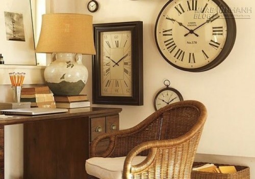 Nếu không gian phòng nhỏ, bạn không nên đặt một chiếc đồng hồ quá to. Chúng sẽ nuốt mất không gian khiến mọi người cảm giác càng bí bách. Thêm vào đó, tiếng tích tắc của đồng hồ sẽ gây ra những áp lực khủng khiếp, đặc biệt là vào ban đêm.