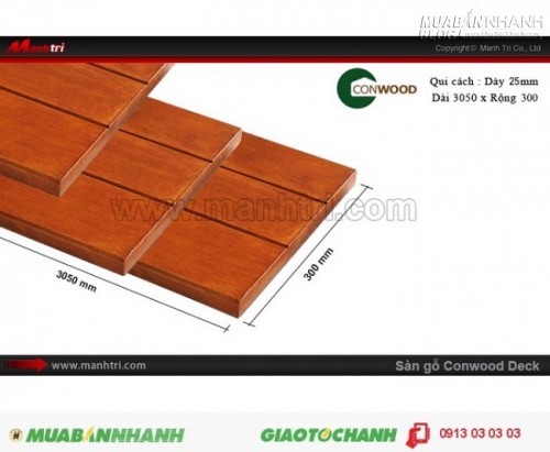 Sàn gỗ Conwood Deck 12. Qui cách: 3050mm x 300mm x 25mm