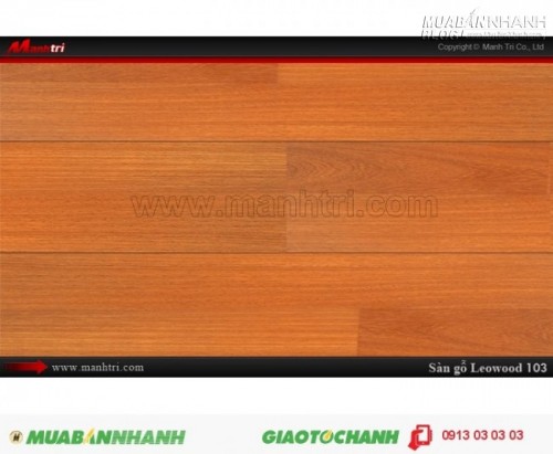Sàn gỗ Leowood 103. Qui cách: 1210 x 195 x 8mm. Xuất xứ: Thái Lan - Chống trầy: AC4. Ứng dụng: Ốp tường, thi công sàn gỗ trong nhà, phòng khách, phòng ngủ
