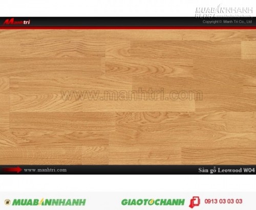 Sàn gỗ Leowood W04. Qui cách: 1210 x 195 x 8mm. Xuất xứ: Thái Lan - Chống trầy: AC4. Ứng dụng: Ốp tường, thi công sàn gỗ trong nhà, phòng khách, phòng ngủ