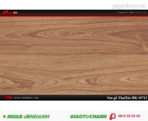 Tên sản phẩm: Sàn gỗ Thaixin HK10712. Chống trầy: AC4. Ứng dụng: Thi công lắp đặt làm sàn gỗ nội thất trong nhà, phòng khách, phòng ngủ, phòng ăn, showroom, trung tâm thương mại, shopping, sàn thi đấu.