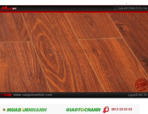 Sàn gỗ Janmi AC12. Ứng dụng: Thi công lắp đặt làm sàn gỗ nội thất trong nhà, phòng khách, phòng ngủ, phòng ăn, showroom, trung tâm thương mại, shopping, sàn thi đấu.