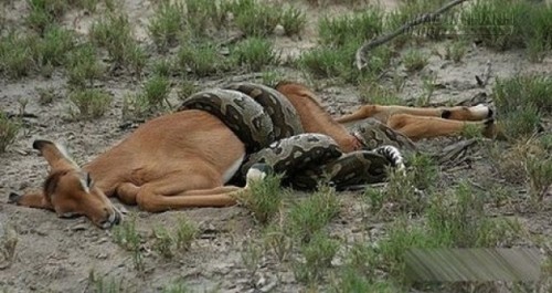 Dù có kích thước lớn hơn rất nhiều lần nhưng con linh dương nhanh chóng bị trăn hạ gục bởi những cú siết uy lực.