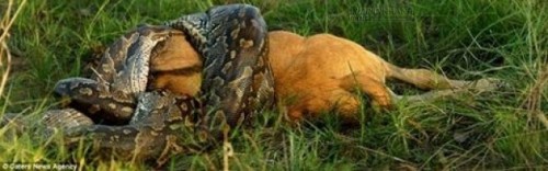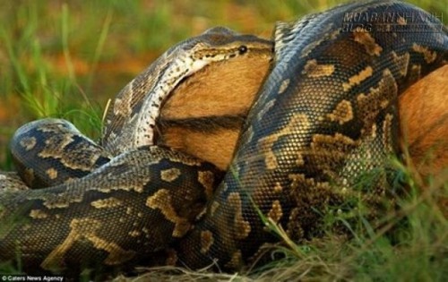 Sau nhiều giờ rình mồi, trăn đã tóm gọn con linh dương tội nghiệp.