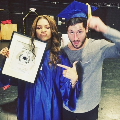 Ngôi sao “Shake It Off” Zendaya tự hào khoe tấm bằng tốt nghiệp trung học bên cạnh là người bạn nhảy trong chương trình “Dancing With the Stars”, Val Chmerkovskiy.