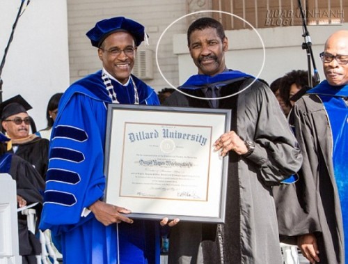 Nam diễn viên da màu Denzel Washington nhận tấm bằng cử nhân danh dự của đại học Dillard hôm 13/5. Phát biểu trong lễ tốt nghiệp,ngôi sao “Training Day” chia sẻ: “Đừng lo sợ thất bại hay e ngại ước mơ của mình quá to lớn. Hãy cứ mơ ước, hãy cứ khát khao, nhưng nhớ đặt ra những mục tiêu cụ thể cho mình ”.