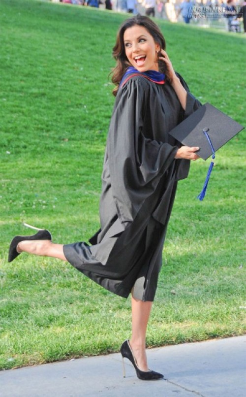 Ngôi sao “Bà nội trợ kiểu Mỹ” Eva Longoria không chỉ xinh đẹp, quyến rũ mà còn rất thông minh, ham học. Nữ diễn viên 40 tuổi nhận bằng Thạc sĩ chuyên ngành Dân tộc học tại Đại học California năm 2013. Cô chia sẻ niềm vui trên Twitter: “Hôm nay là một ngày trọng đại!!! Rất vui sướng khi đã tốt nghiệp Thạc sĩ chuyên ngành Chicano Studies (nghiên cứu về những người gốc Latin ở Mỹ). Không bao giờ quá già hay quá bận để tiếp tục sự nghiệp học hành".