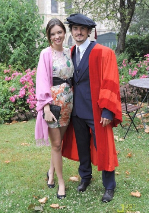 Tài tử Orlando Bloom tự hào nhận tấm bằng của Đại học Kent năm 2010. Trong trang phục áo choàng đỏ cùng mũ đen truyền thống, nam diễn viên điển trai của Hollywood nhận bằng tốt nghiệp trong thánh đường của Canterbury. Đi cùng ngôi sao “Cướp biển Caribe” còn có chân dài Australia Miranda Kerr, khi đó cô vẫn là bạn gái của anh.