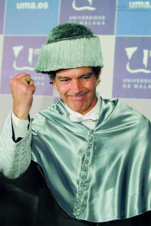 Vẻ mặt đầy tự hào của tài tử “Mặt nạ Zorro” Antonio Bandera khi nhận bằng Tiến sĩ danh dự của Đại học Malaga tại quê nhà Tây Ban Nha.