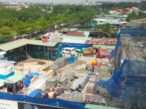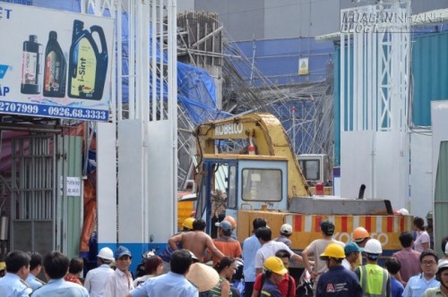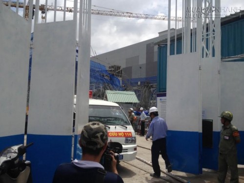 11h5, công tác cứu hộ bên trong vẫn đang được tiến hành khẩn trương. Trao đổi với phóng viên Dân trí, ông Tư Đông (51 tuổi, quê Cà Mau) công nhân trong công trình cho biết, khi cả trăm công nhân vừa vào công trình làm việc thì giàn giáo đổ sập, tất cả mọi người bỏ chạy ra ngoài. Theo quan sát của ông Đông, khoảng 7 công nhân bị giàn giáo đè lên.