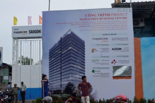 Cổng chính của công trình bị các bảo vệ đóng lại, các hàng rào xung quanh cũng bị che kín.