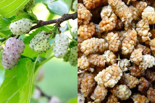 Dâu tằm trắng tươi và khô.