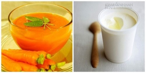 Công thức dưỡng trắng da tiếp theo dành cho bạn chính là sữa chua và cà rốt. Cách làm như sau: bạn xay nhuyễn 1/2 củ cà rốt rồi trộn với 2 thìa sữa chua không đường để tạo thành hỗn hợp dưỡng trắng da. Tiến hành thoa đều hỗn hợp lên toàn bộ khuôn mặt, giữ nguyên trong 20 phút rồi rửa lại với nước để kết thúc quá trình.Với công thức này, bạn cũng áp dụng 2 – 3 lần/tuần nhé!