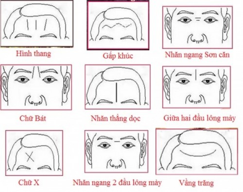 5. Trên trán có 3 nếp nhăn xiên theo hình thang