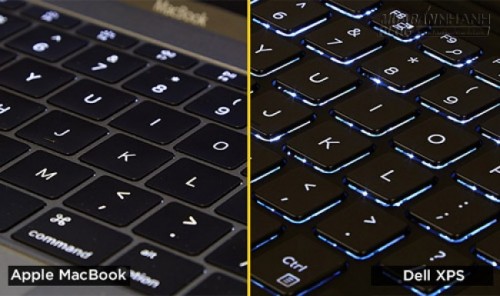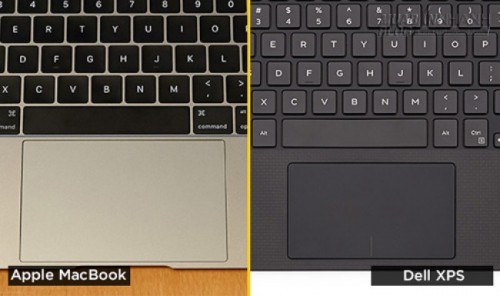 Trong khi Dell XPS 13 vẫn giữ kiểu dáng touchpad và bàn phím theo kiểu truyền thống thì Apple MacBook lại sử dụng công nghệ Butterfly Mechanism (cơ chế cánh bướm) giúp cho máy trông mỏng và nhẹ hơn. Thiết kế này của MacBook khiến người dùng có cảm giác phím to hơn nhưng không gian bấm thực tế lại trở nên chật chội và khó khăn hơn.