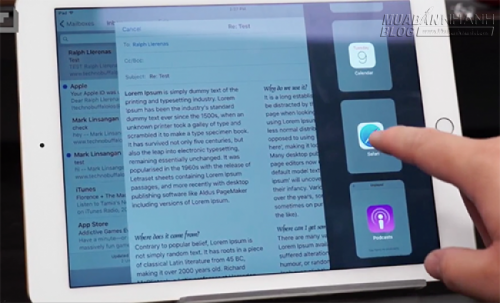 Apple bổ sung tính năng đa nhiệm mở hai cửa sổ cùng lúc cho iOS 9. Màn hình sẽ hiển thị song song hai ứng dụng với tỷ lệ 50-50 hoặc 70-30 nhờ thanh điều khiển Slideover. Ngoài ra, iOS 9 còn cho phép mở video dưới dạng cửa sổ nhỏ khi đang thao tác với các ứng dụng khác. |