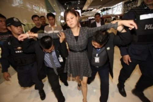 Cảnh sát xác định nữ du khách là Jiang Xulian, 39 tuổi. Giới chức bắt Jiang và một người đàn ông Trung Quốc vào đêm 10/9 tại sân bay Suvarnabhumi ở thủ đô Bangkok khi họ tìm cách rời Thái Lan. Trước đó, hai người tráo viên kim cương thật tại một cửa hàng ở hội chợ đá quý Bangkok. Chủ cửa hàng nhớ mặt hai du khách Trung Quốc.
